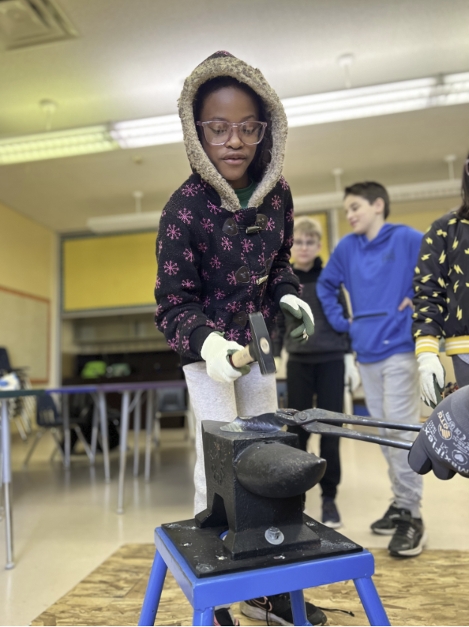 Du 2 au 9 mars 2023, les élèves de la 2e à la 6e année de l’école Anne-Hébert et de l’annexe Henderson ainsi que le personnel ont pu s’exercer au métier de forgeron !